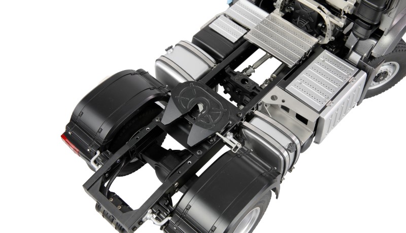 Durch seine detailgetreue Optik im Maßstab 1:14 lässt er das Herz von Modellbau-Fans höherschlagen. Das Fahrzeug bringt 5 Kilogramm auf die Waage, alle Funktionen lassen sich bequem über die Fernsteuerung bedienen. Chassis, Mulde, Antriebsstrang und sämtliche Wellen bestehen vollständig aus Metall, was eine hohe Langlebigkeit der Bauteile garantiert. Die Fahrerkabine ist im Maßstab nachgebildet und mit einem kompletten Innenraum ausgestattet. Gummibereifung mit hoher Bodenhaftung und Felgen aus Metall runden das Erscheinungsbild ab.