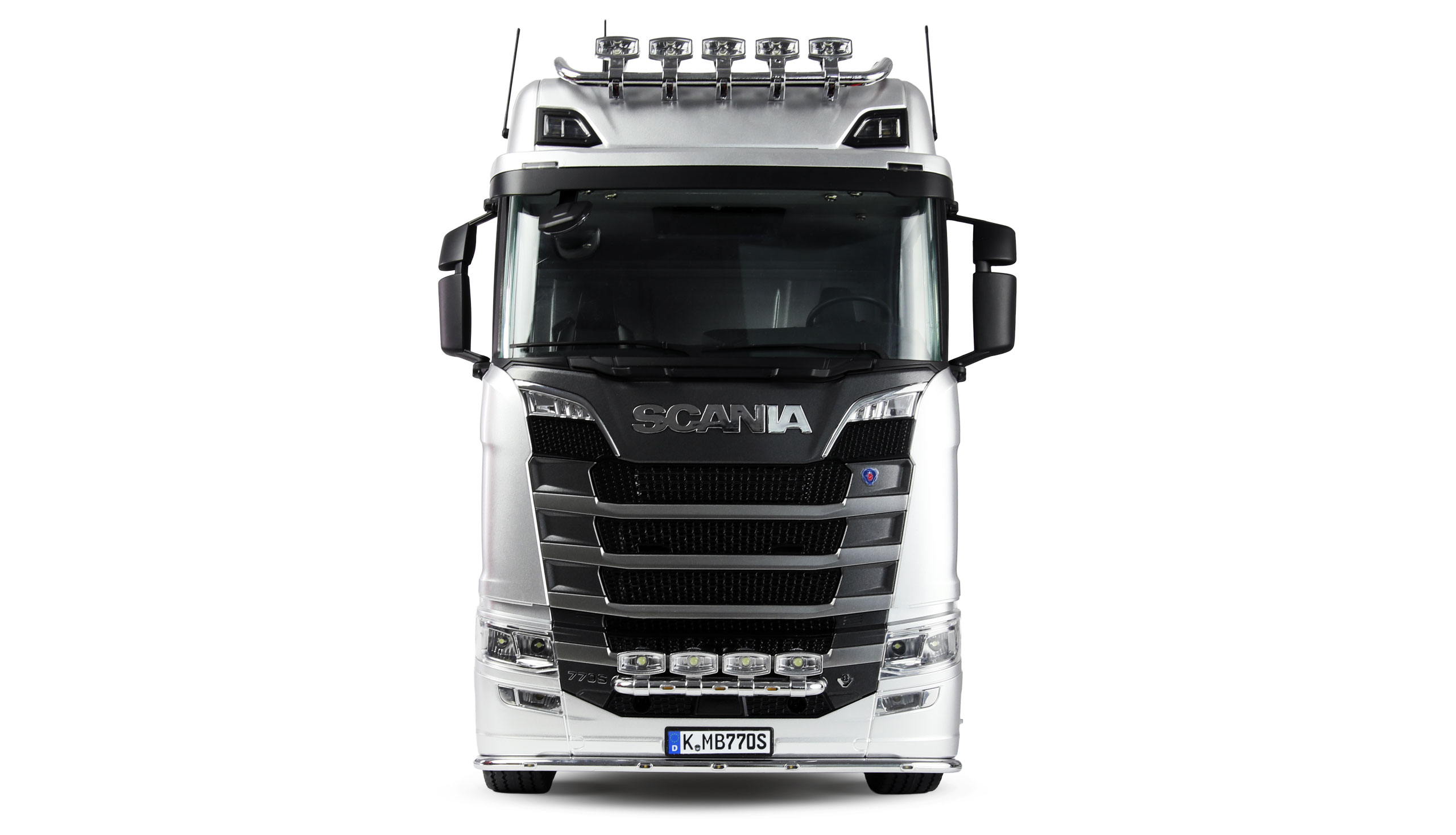 Das RTR-Set wird komplett einsatzbereit geliefert und enthält neben dem Modell auch Fernsteuerung, Akku sowie ein passendes Ladekabel. Der manuelle Universalsattel aus Metall ermöglicht die Verwendung verschiedenster Trailer im Maßstab 1:14. Weitere Details wie die zu öffnenden Türen am Fahrerhaus, durchsichtige Scheiben mit freiem Blick auf das realistisch gestaltete Interieur und die offizielle Lizenzierung des Scania 770 unterstreichen den hohen Qualitätsanspruch dieses Modells.