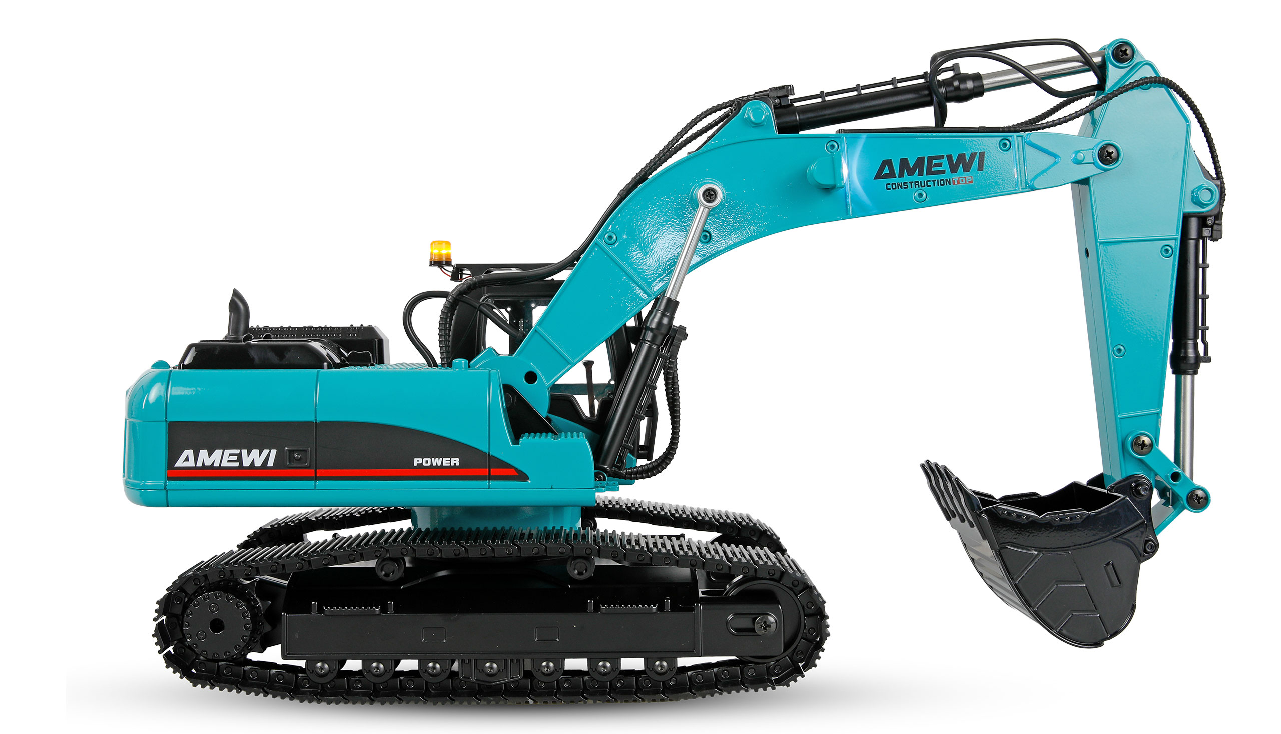 Die hochwertige 14-Kanal-Fernsteuerung ermöglicht eine proportionale Steuerung sämtlicher Bewegungen, einschließlich der Ketten, wodurch sich der Bagger feinfühlig und präzise manövrieren lässt. Das störungssichere 2,4-GHz-System sorgt dabei für eine zuverlässige Signalübertragung. Das Modell wird als RTR-Set (Ready-to-Run) geliefert – inklusive Fernsteuerung, Akku und Ladegerät – und ist ab Werk fahrfertig eingestellt und aufeinander abgestimmt, sodass es sofort einsatzbereit ist.