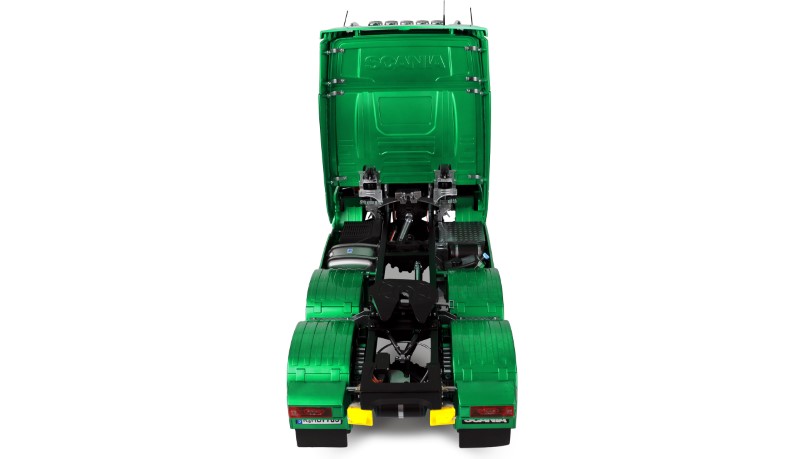 Das RTR-Set wird komplett einsatzbereit geliefert und enthält neben dem Modell auch Fernsteuerung, Akku sowie ein passendes Ladekabel. Der manuelle Universalsattel aus Metall ermöglicht die Verwendung verschiedenster Trailer im Maßstab 1:14. Weitere Details wie die zu öffnenden Türen am Fahrerhaus, durchsichtige Scheiben mit freiem Blick auf das realistisch gestaltete Interieur und die offizielle Lizenzierung des Scania 770 unterstreichen den hohen Qualitätsanspruch dieses Modells.