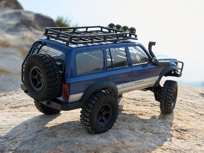 Die wasserfeste Elektronik besteht aus einem kraftvollen Brushed-Motor, zwei unabhängigen Servos, einer 3-in-1-Empfänger/Regler/Lichtsteuer-Einheit und einem 2S (7,4V) 900mAh LiPo Akku. Die komplette Elektronik ist bereits fertig im Modell integriert und angeschlossen, so dass der Land Cruiser direkt nach dem auspacken an den Start gehen kann.