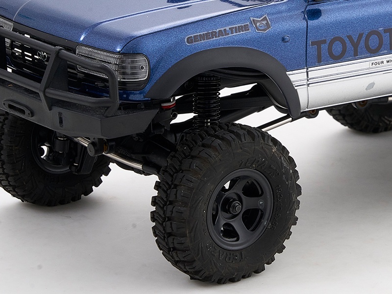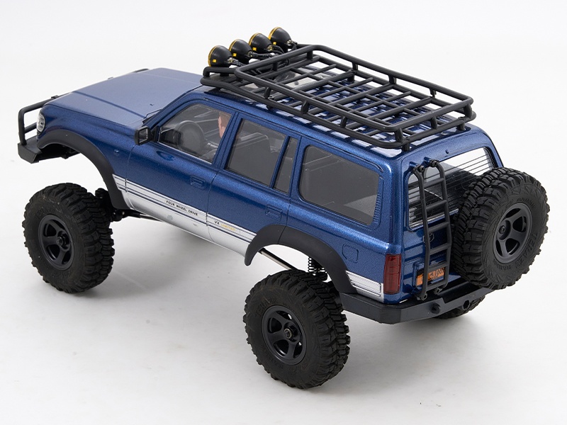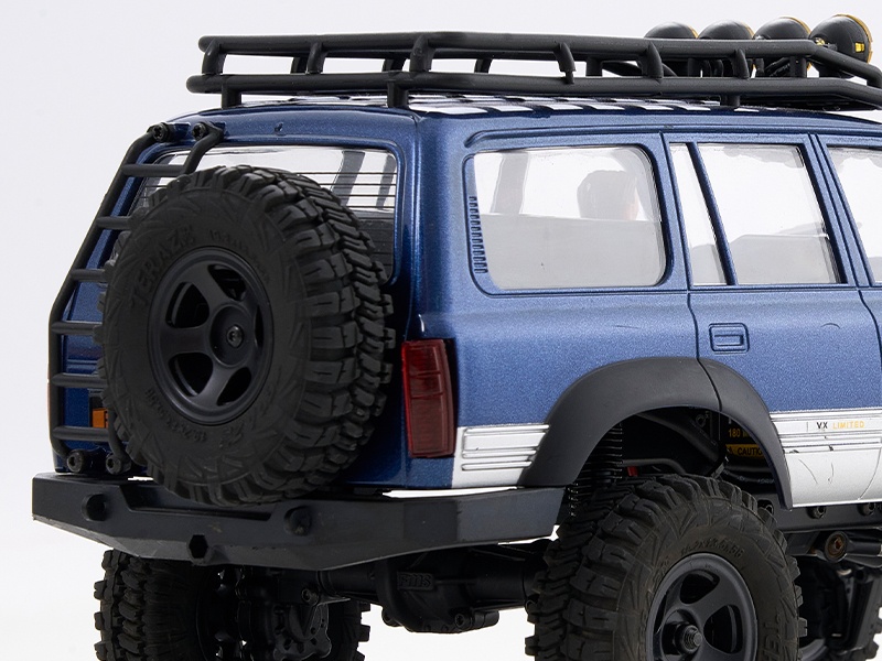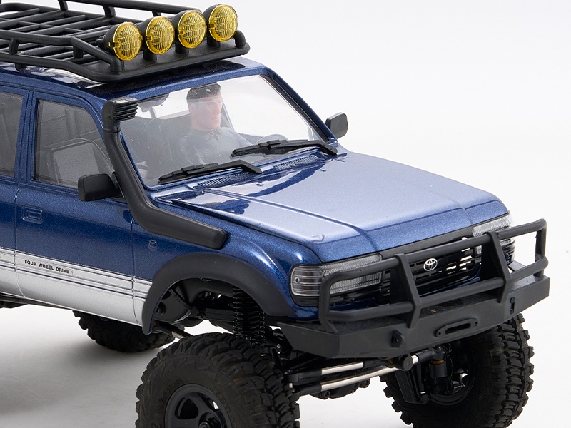 Das Modell ist offiziell lizensiert von der Toyota Motor Corporation. Von der geraden Karosserielinie, dem Dachgepäckträger, den vorderen und hinteren Stoßfängern, dem funktionsfähigen Reserverad bis hin zur lenkbaren Blinkergruppe und den simulierten Kegelradantriebsachsen - bei diesem Scaler stimmt jedes Detail.