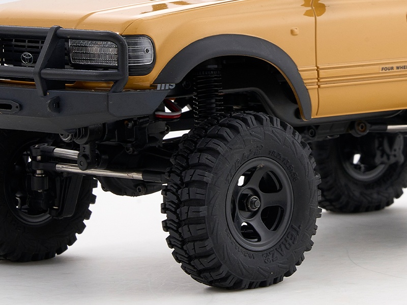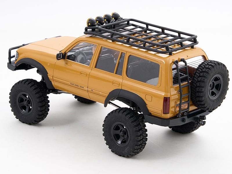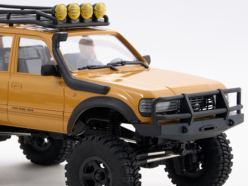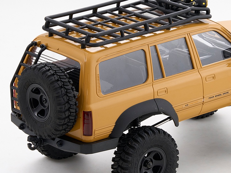 Das Modell ist offiziell lizensiert von der Toyota Motor Corporation. Von der geraden Karosserielinie, dem Dachgepäckträger, den vorderen und hinteren Stoßfängern, dem funktionsfähigen Reserverad bis hin zur lenkbaren Blinkergruppe und den simulierten Kegelradantriebsachsen - bei diesem Scaler stimmt jedes Detail.