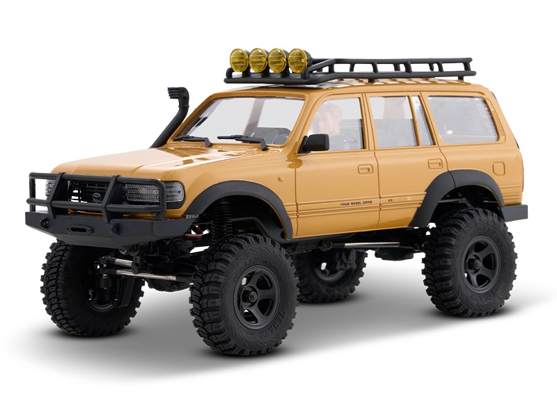 Der FCX18 Toyota LC80 ist ein offiziell lizensierter Crawler im Maßstab 1:18. Der Scaler kommt inklusive 2-Gang-Getrieb, eingebauter Elektronik, integrierter Beleuchtung, Fernsteuerung und Akku fahrfertig aus der Box.