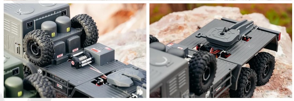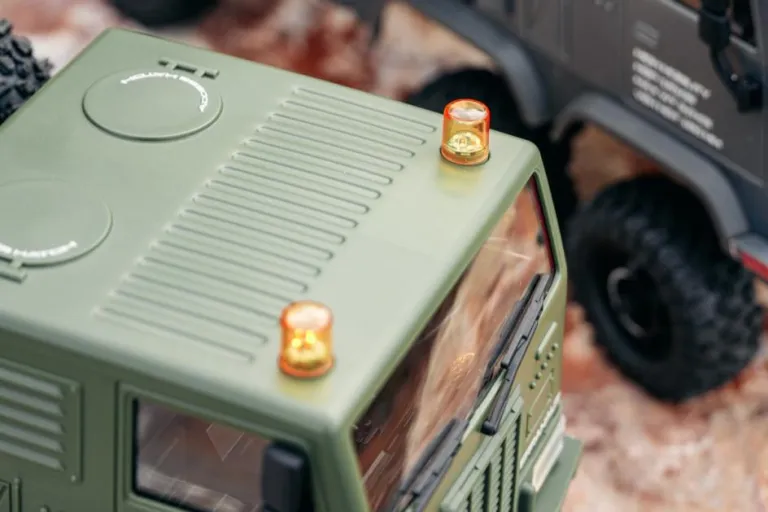 Die integrierte ferngesteuerte LED-Beleuchtung und eine voll funktionsfähige Bergungswinde sorgen für zusätzlichen Realismus und Funktionalität, sodass es mehr als nur ein RC-Modell ist.