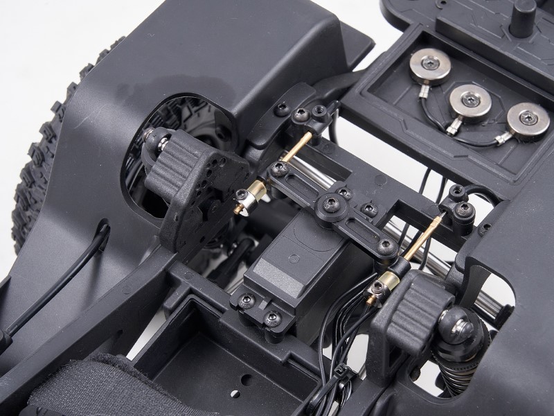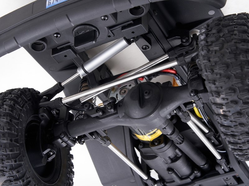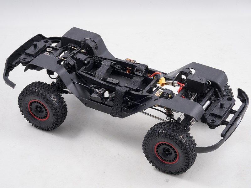 Das komplett neu entwickelte LCG-Chassis (Low Center of Gravity) aus verstärktem Nylon bietet eine besonders niedrige Schwerpunktlage - perfekt für schwierige Passagen und steiles Gelände. Die modulare Rahmenbauweise mit Zapfenverbindungen (Tenon & Mortise) sorgt für maximale Stabilität und einfache Wartung. Ein weiteres Highlight: Die portalen Achsen an Vorder- und Hinterachse erhöhen die Bodenfreiheit erheblich und reduzieren gleichzeitig die Belastung der Antriebskomponenten.