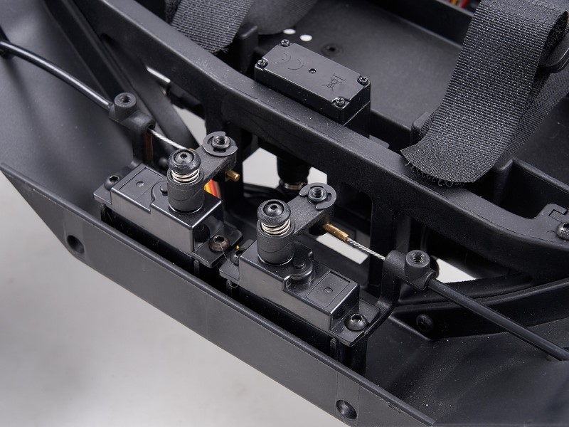 - Lenkservo mit integriertem Stoßschutzinklusive 4-Kanal Fernsteuerung (Kanal 3 für Getriebe, Kanal 4 frei belegbar)
