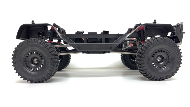 Unter der Karosserie basiert unser CR4.4 Chassis, was bedeutet, dass es sehr robust ist und schwierigste Hindernisse im Gelände bewältigen kann! Der Antrieb erfolgt über einen 32T 550er High Torque Brushed-Motor und einem wasserdichten 2-3S-fähigen Regler, der die Kraft über ein robustes Mitteldifferential und den vollständig kugelgelagerten Antriebsstrang überträgt.