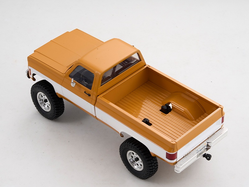 Die wasserfeste Elektronik besteht aus einem kraftvollen Brushed-Motor, zwei unabhängigen Servos, einer 3-in-1-Empfänger/Regler/Lichtsteuer-Einheit und einem 2S (7,4V) 900mAh LiPo Akku. Die komplette Elektronik ist bereits fertig im Modell integriert und angeschlossen, so dass der Chevrolet K10 direkt nach dem auspacken an den Start gehen kann.