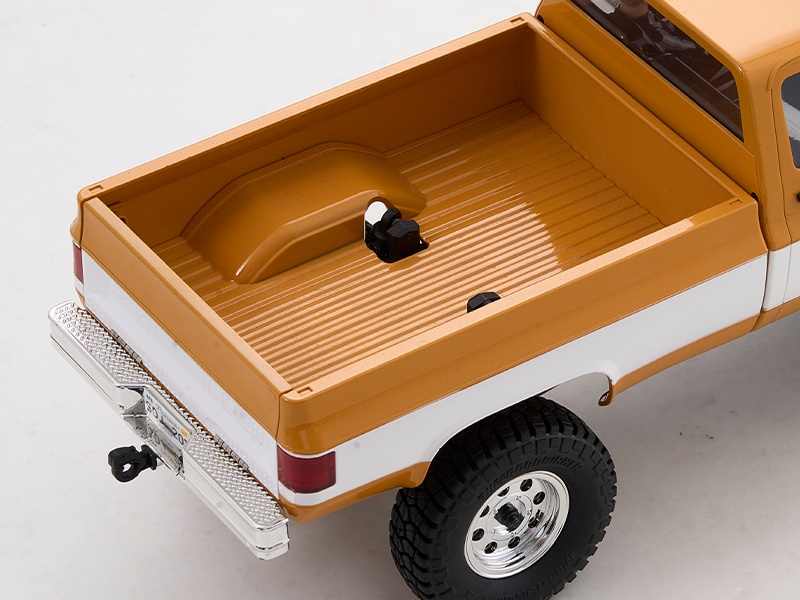 Das Modell ist offiziell lizensiert von General Motors. Von der zweifarbig originalgetreuen Lackierung, dem Kühlergrill, der aufklappbaren Heckklappe an der Ladefläche bis hin zur steuerbaren Beleuchtung und den simulierten Kegelradantriebsachsen - bei diesem Scaler stimmt jedes Detail.