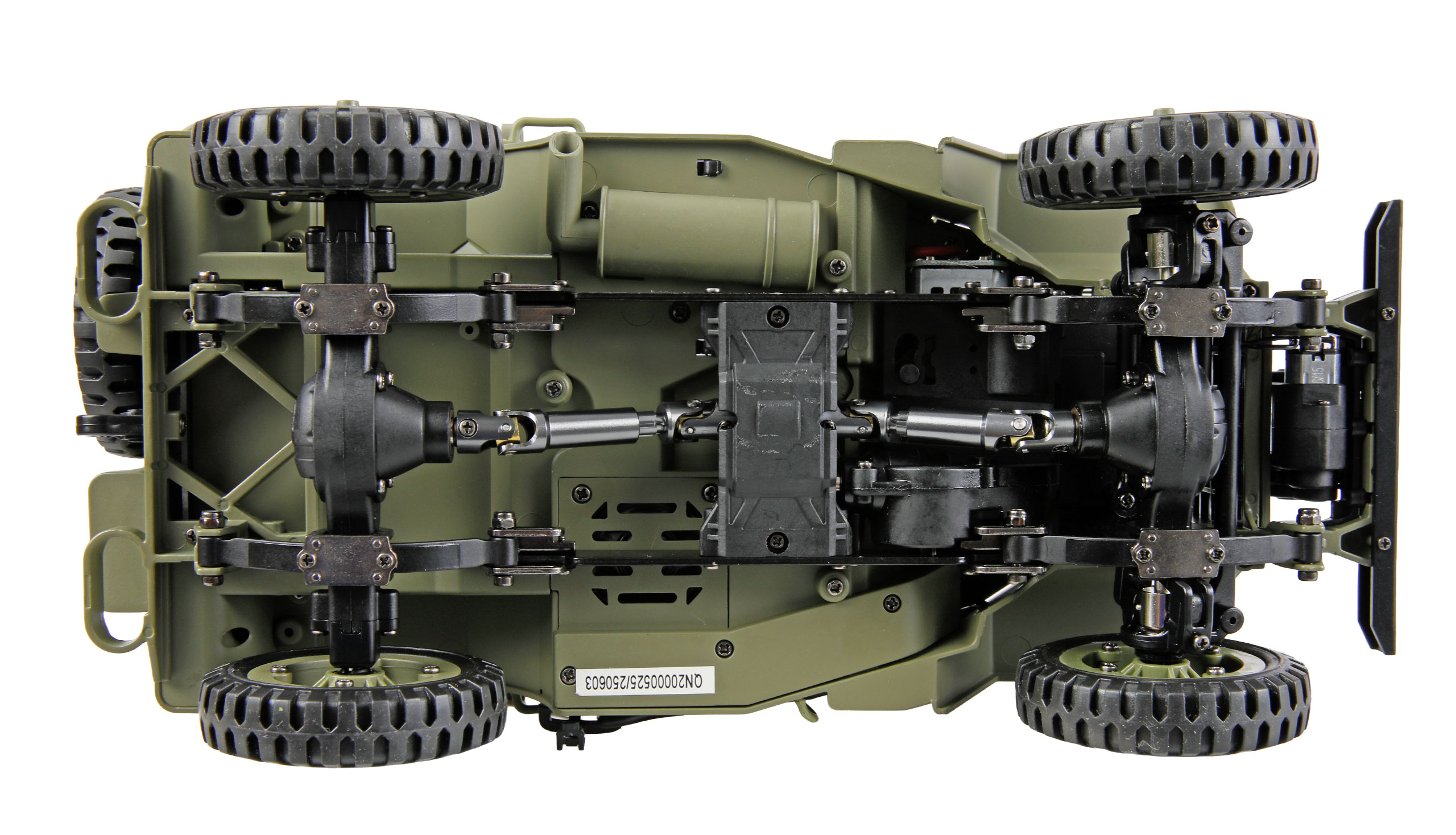 Der Jeep Willys MB Scale Crawler im Maßstab 1:14 ist eine detailgetreue Nachbildung des legendären Geländefahrzeugs, das während des Zweiten Weltkriegs als robustes und vielseitiges Einsatzfahrzeug der US-Armee bekannt wurde. Dieses ferngesteuerte Modell verbindet authentisches Design mit moderner RC-Technik und bietet ein realistisches Fahrerlebnis auf jedem Terrain.