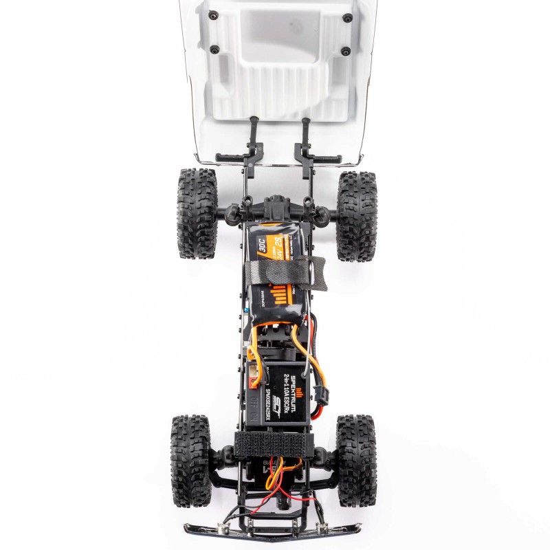 Für eine verbesserte Federung wurden weiche, ölgefüllte Stoßdämpfer hinzugefügt, die Unebenheiten mühelos ausgleichen und eine stabile Fahrt auf rauem Gelände ermöglichen. Zuverlässige Spektrum-Elektronik sorgt für präzise Steuerung. Der SCX24 C10 kommt komplett montiert, voll ausgestattet und mit wichtigen Upgrades zu dir – die perfekte Wahl für Einsteiger und erfahrene Axial-Fans.