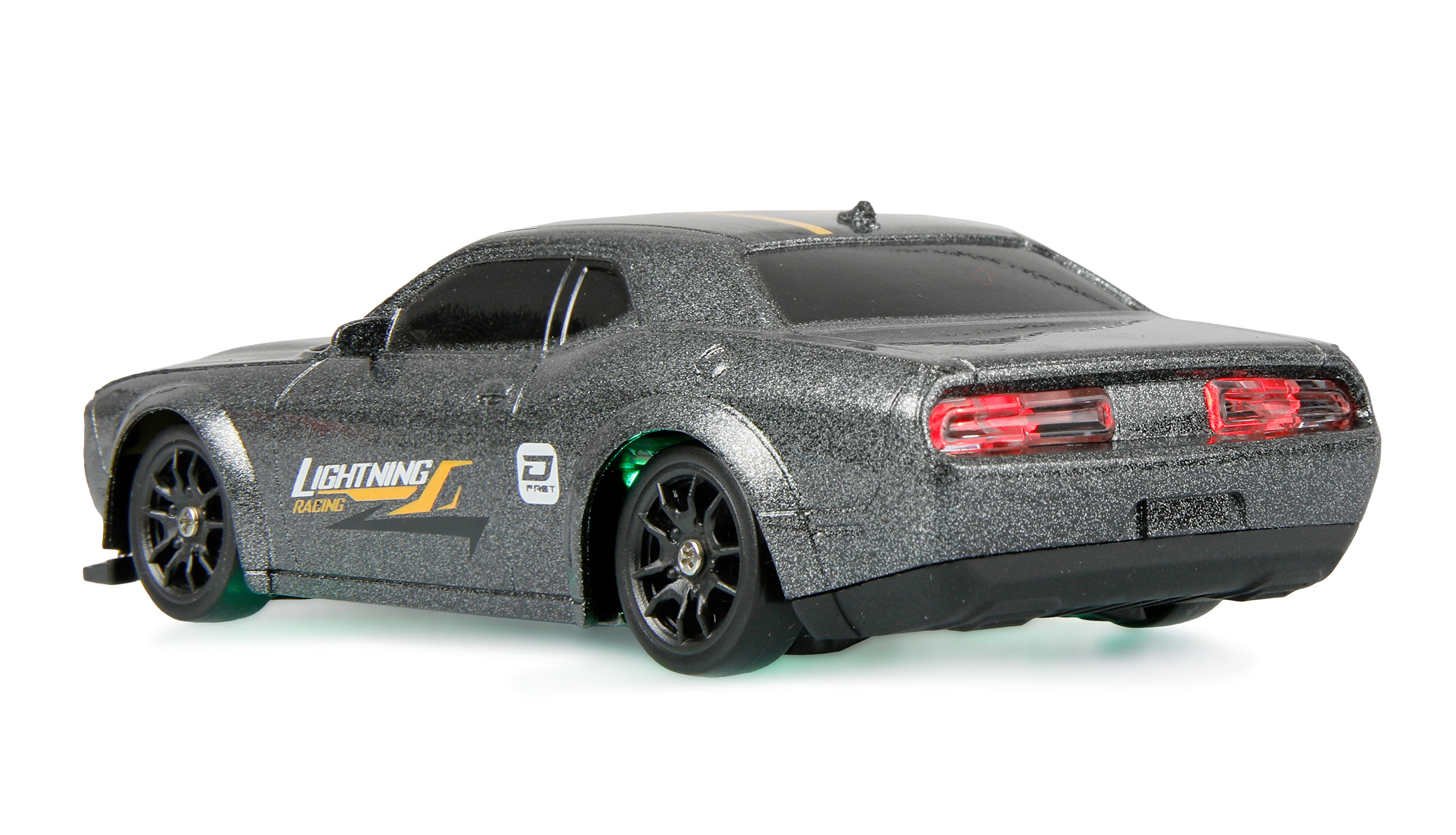 Die Lenkung kann an der Fernsteuerung fein eingestellt werden. Für abwechslungsreichen Fahrspaß sind sowohl Driftreifen aus Kunststoff als auch Straßenreifen mit Gummibeschichtung beigelegt. Mit den beiliegenden Pylonen lassen sich eigene Strecken oder Driftkurse aufbauen. Als RTR-Set (Ready-to-Run) wird das Drift Sport Muscle Car vollständig fahrbereit geliefert und enthält alles, was für den sofortigen Start benötigt wird – ideal für kleine Rennfahrer, die großen Fahrspaß im handlichen Format erleben möchten.