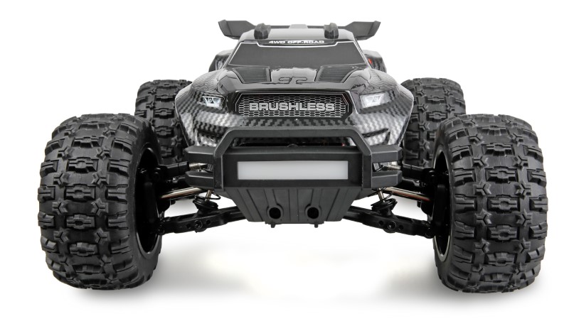 Das ferngesteuerte Modell ist vollständig kugelgelagert und mit einem kompletten Brushless-Antriebssystem ausgestattet, das aus einem leistungsstarken Brushless-Motor und einem 60A Brushless-ESC besteht. In Kombination mit dem enthaltenen 3S 11,1V 2000mAh Li-Ion Akku erreicht der Truggy Geschwindigkeiten von über 60 km/h. Der gesamte Antriebsstrang besteht aus Metall, während Zahnräder und Differentiale aus besonders widerstandsfähigem Chromstahl gefertigt sind. Diese Konstruktion sorgt für maximale Haltbarkeit, selbst bei anspruchsvollem Geländeeinsatz.