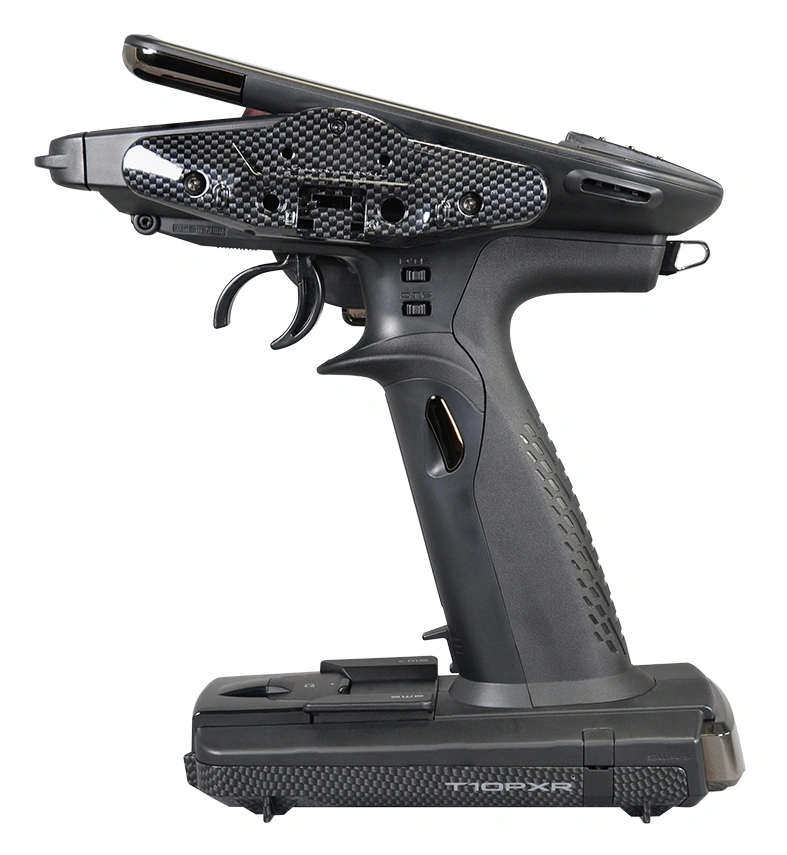 Die T10PXR ist ein 10-Kanal 2.4GHz Computer-Fernsteuersystem mit den Modulationsarten F-4G,T-FHSS SR / T-FHSS / S-FHSS und MiniZ. Der Sender überzeugt mit neuem Design, neuem Tastenfeld und hochwertigen Karbonelementen. Neu hinzugekommen sind einige neue Taster, 2- und 3-Stufenschalter sowie eine Schalter-Wippe am Fuß des Senders.