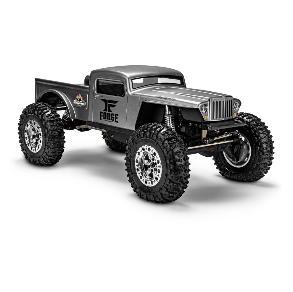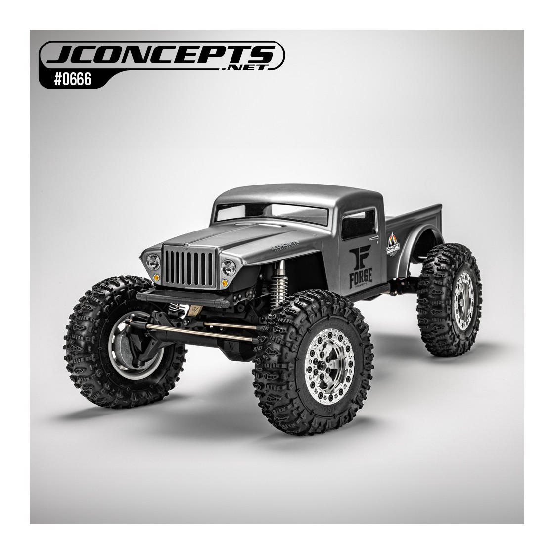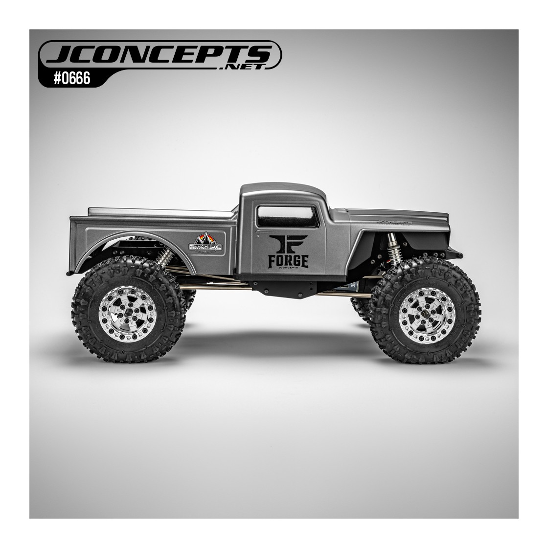 Die Forge Karosserie ist der spannende Nachfolger der beliebten Anvil und die neueste Veröffentlichung von JConcepts für 12,3” Radstand Crawler Trucks. Das neue Body-Design verfügt über eine zusätzliche Ladefläche, die direkt mit der Kabine verbunden ist. Die im Blech-Optik gehaltene Ladefläche sorgt für eine kraftvolle Erscheinung auf den Trails und verwandelt den Truck zusammen mit der bekannten Anvil-Kabine in ein wettbewerbsorientiertes Fahrzeug mit kompromisslosem Look.