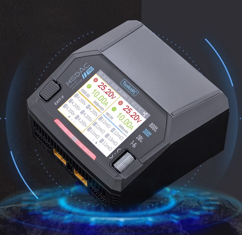 Das ToolkitRC M6DAC V2 ist ein kompaktes, duales Ladegerät ideal für hochleistungsfähige Lipo-Setups. Es unterstützt verschiedene Batteriechemien und bietet flexible Stromversorgungsoptionen sowie smarte Zusatzfunktionen wie kabelloses Laden und USB-C Quick Charge.