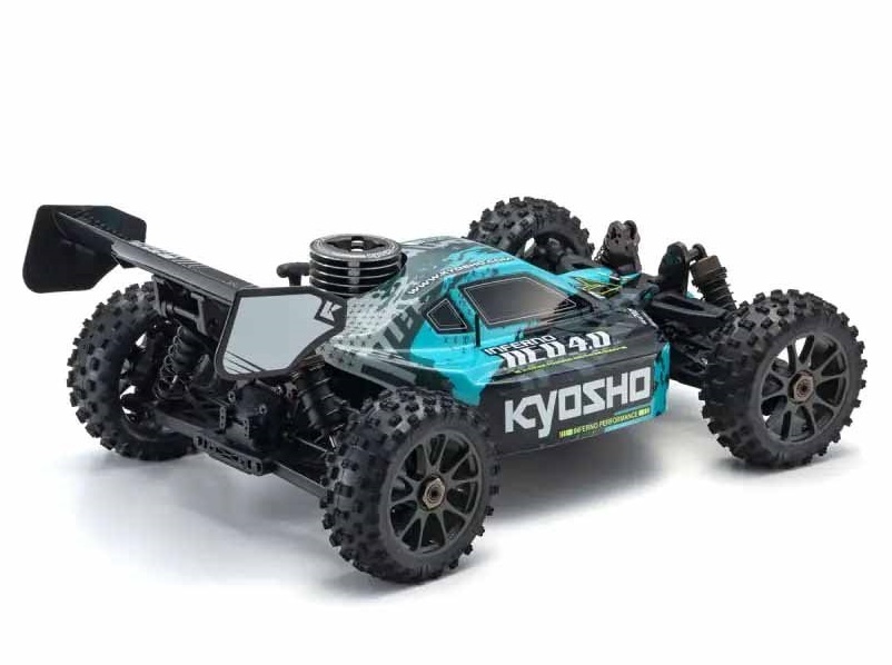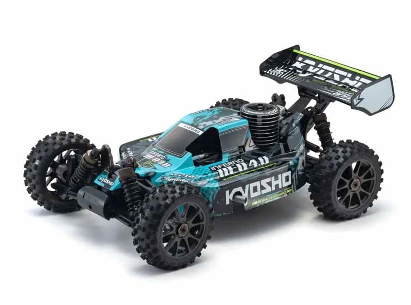 Die 1/8 Inferno GP Buggy-Serie von Kyosho ist weltweit als Rennmodell der Spitzenklasse anerkannt. Der Inferno NEO 4.0, basierend auf dem Inferno, wird als Readyset mit vormontiertem Chassis, eingebautem Motor, RC-System und lackierter Karosserie geliefert. Nach dem Einlegen der Batterien in den mitgelieferten Pistolengriff-Sender und das Chassis sowie dem Befüllen des Kraftstofftanks ist der Inferno NEO startklar. Anfängern wird der schwierige Einfahrprozess des Motors durch einen Einfahrring erleichtert, der das Einstellen der Nadeln überflüssig macht. Der sanft anspringende Motor macht den Einstieg in die GP-Modelle leicht. Er teilt sich die Karosserie mit dem elektrischen Inferno NEO 4.0 VE und ist in zwei Farbvarianten erhältlich. Die drehmomentstarken Lenk- und Drosselklappenservos des Vorgängermodells sorgen für eine zuverlässige Kontrolle, auch unter anspruchsvollen Offroad-Bedingungen. Der Inferno NEO 4.0 bietet sowohl Einsteigern als auch erfahrenen R/C-Enthusiasten eine aufregende Buggy-Performance im Maßstab 1/8.
